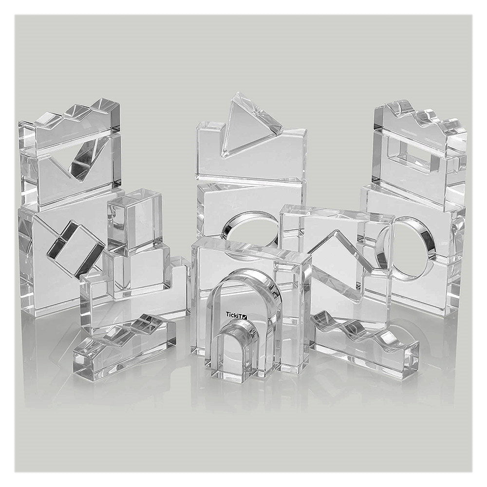 • Blocurile acrilice transparente au margini sigure, lustruite si suprafete netede si tactile concepute pentru a le permite copiilor sa exploreze lumina, precum si sa construiasca modele, secvente si structuri fascinante.