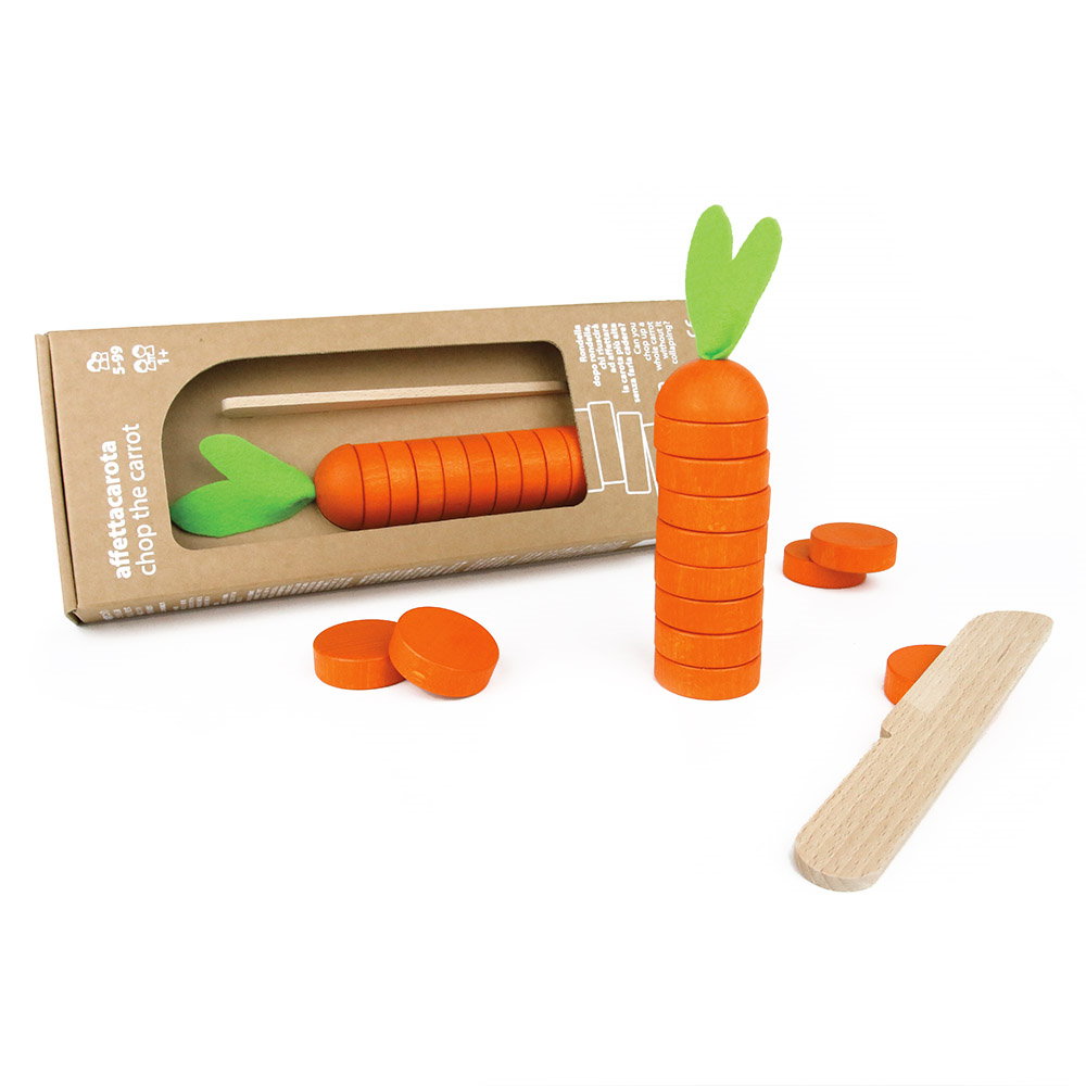 • Jocul contine: 13 felii de morcov din lemn FSC de fag, 1 cutit de jucarie din lemn 100 de fag.