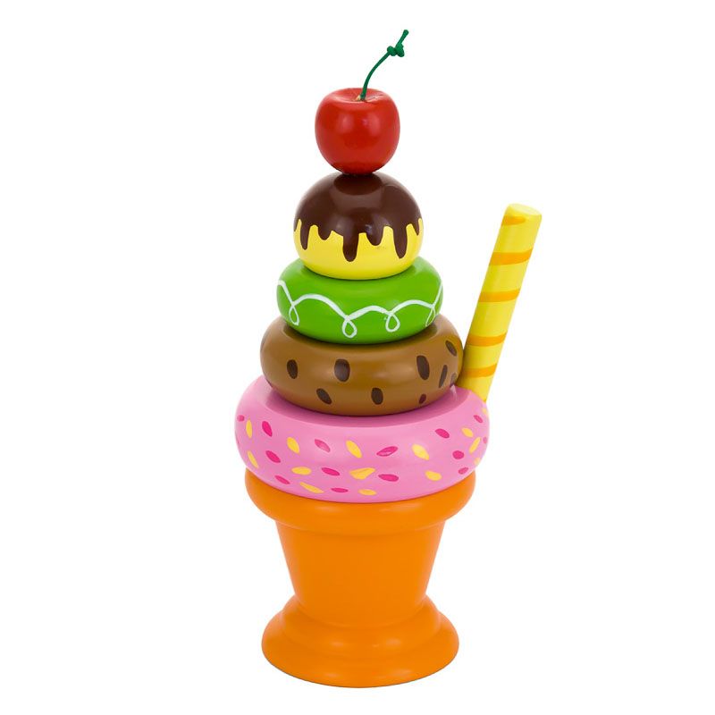 • Inghetata din lemn este o jucarie de tip Montessori care va antrena simturile copilului, motricitatea fina, coordonarea ochi-mana, dexteritatea. Copilul trebuie sa stivuiasca pe tija de lemn discurile inghetatei, respectand ordinea corecta a marimilor, invatand astfel caracterul distinctiv al dimensiunilor mai mici si mai mari.
