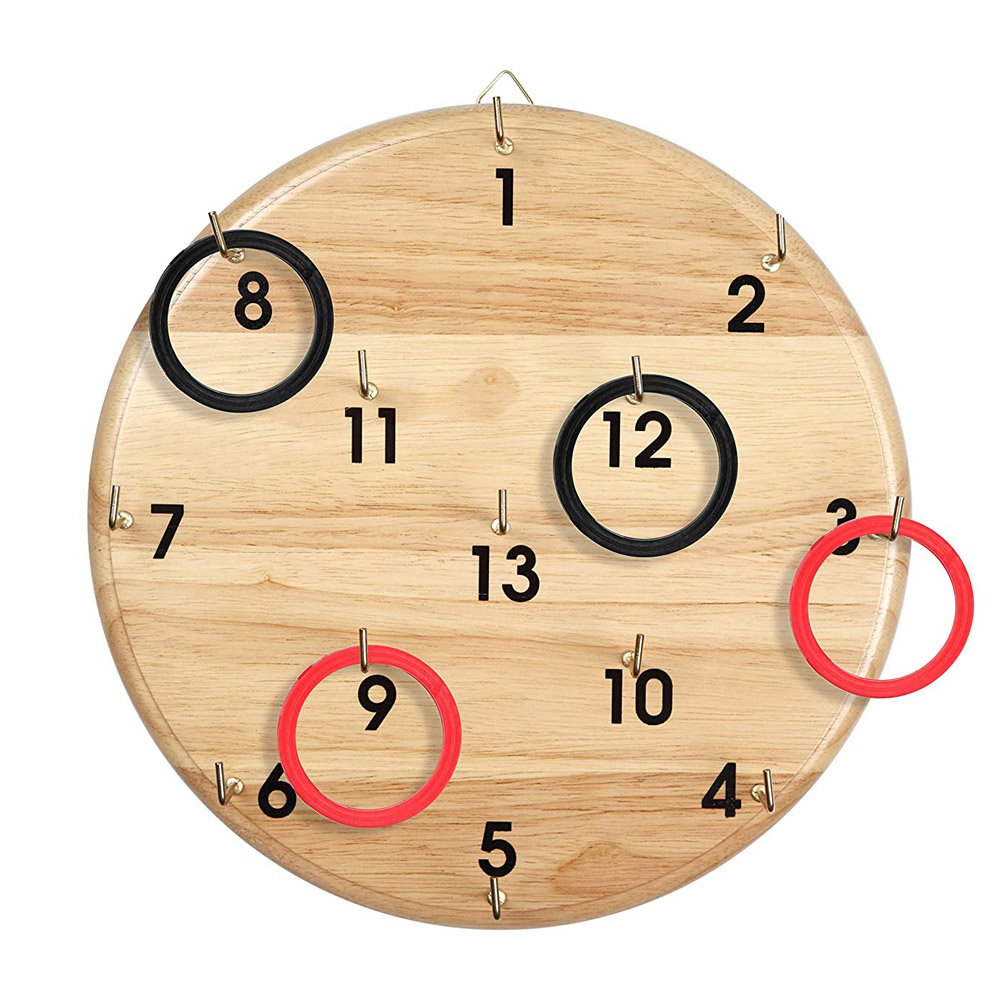 • La fel de competitiv si captivant, acest joc cu inele este o alternativa mai sigura, fara sageti, la jocul de darts.