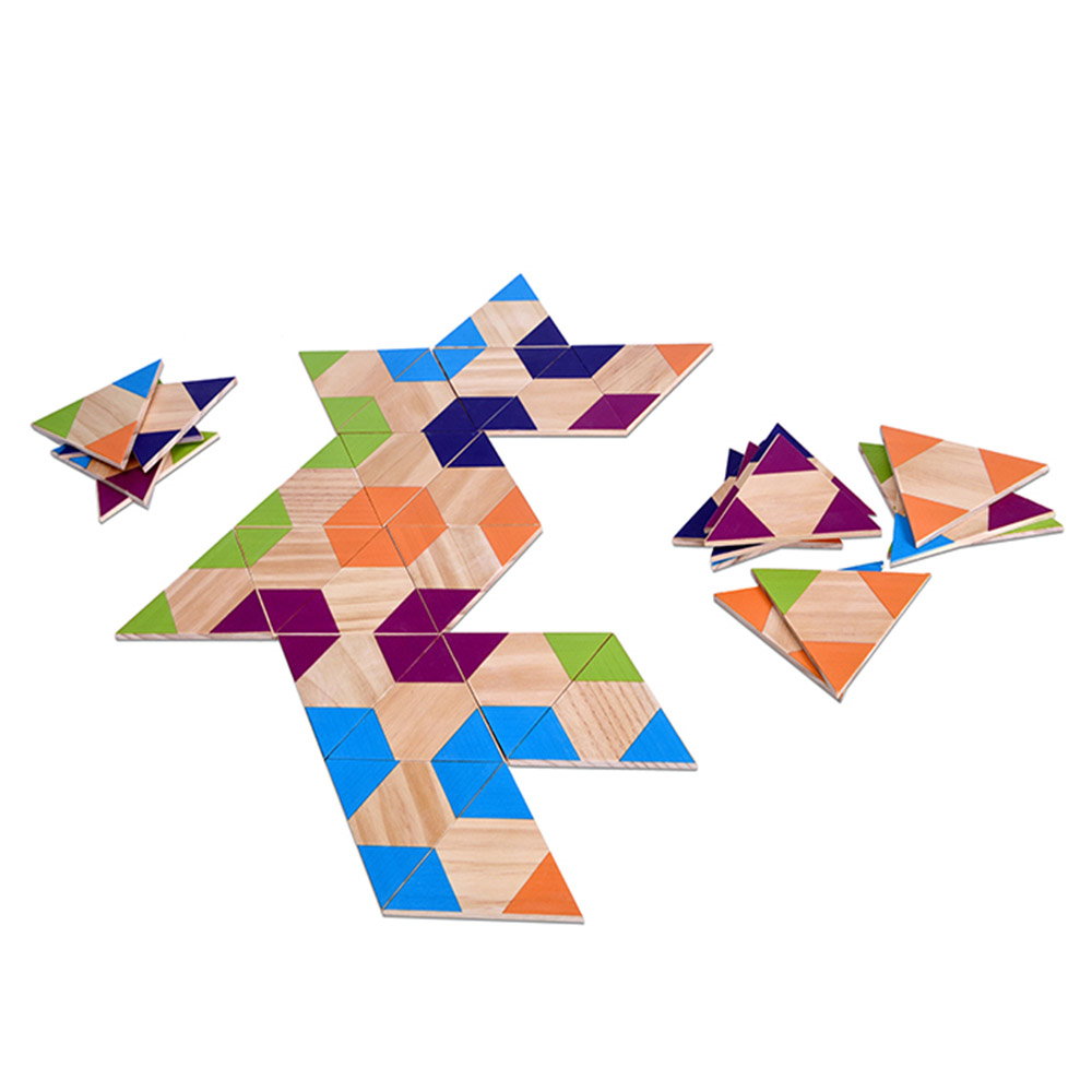 • Setul contine 35 de placi triunghiulare din placaj cu colturile colorate, avand laturile de 8 cm.