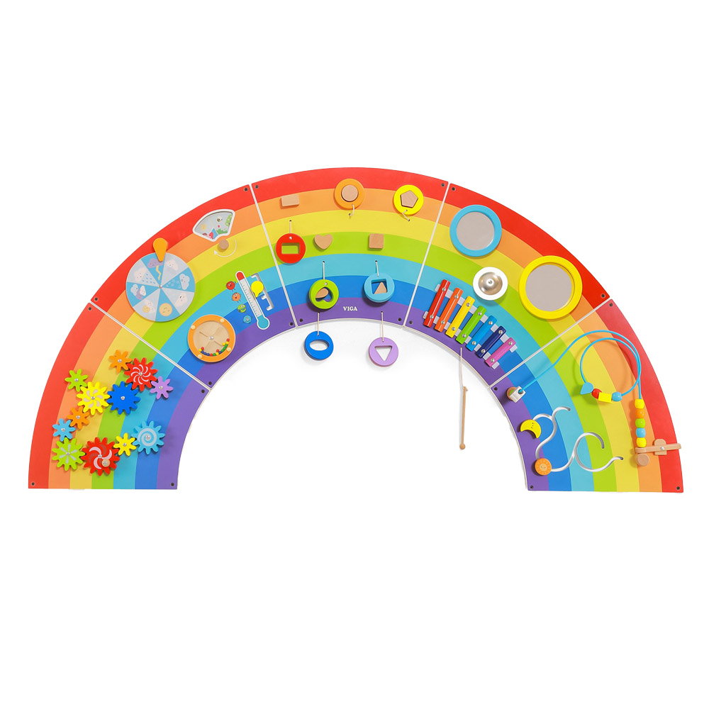 • Copiii vor fi captivati de aceasta jucarie multifunctionala de perete sub forma unui curcubeu, ce le ofera mai multe activitati care ii vor amuza si tine ocupati pentru multa vreme.