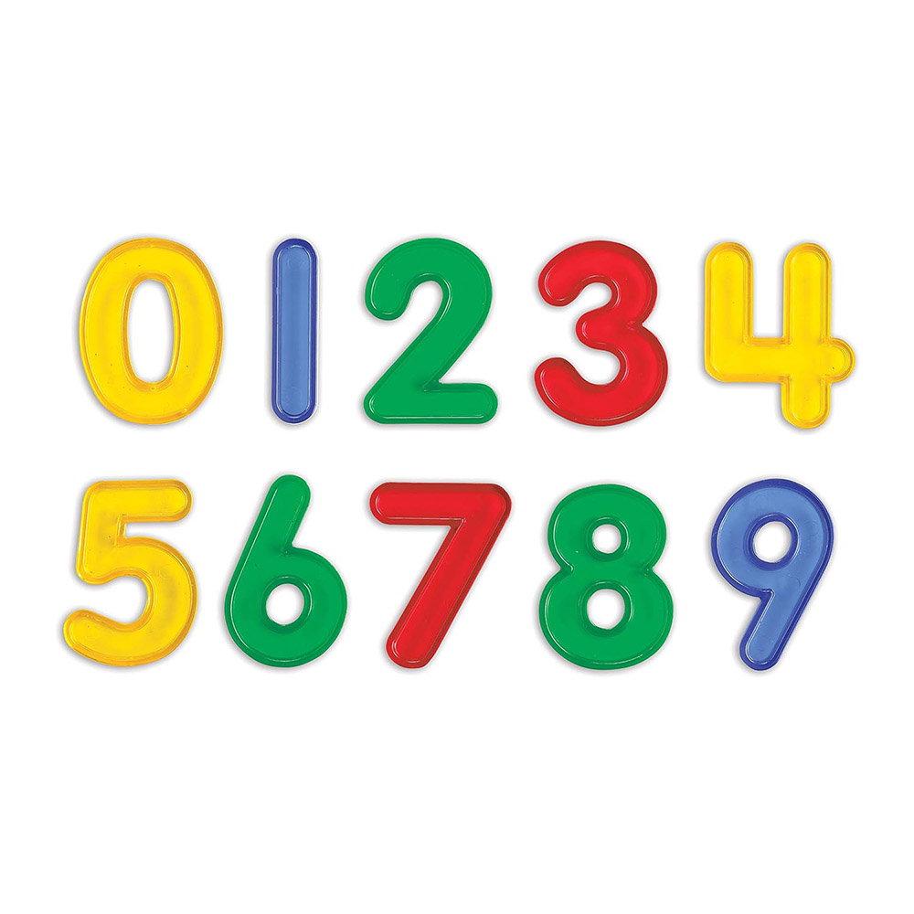• Setul include 10 numere colorate transparente, realizate din plastic de calitate in 4 culori: rosu, verde, galben, albastru.