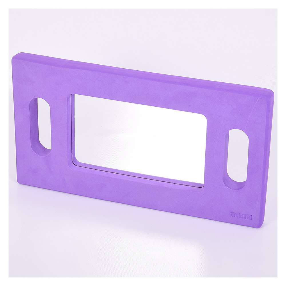 • Copiii se vor bucura de aceasta oglinda mare cu rama si manere usoare din spuma mov, ideala pentru jocuri senzoriale si de rol, care le va permite sa se observe si auto-analizeze, sa invete despre simetrie, reflectarea luminii si sa observe lumea inconjuratoare.