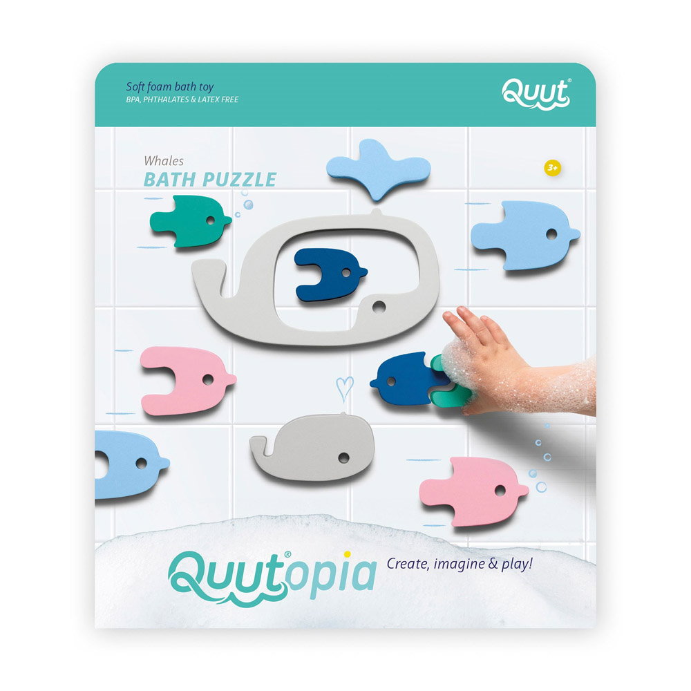 • Transforma in distractie timpul de baie al micutului tau, cu puzzle-ul de baie din spuma moale, Balene si pestisori, de la Quut Toys!
