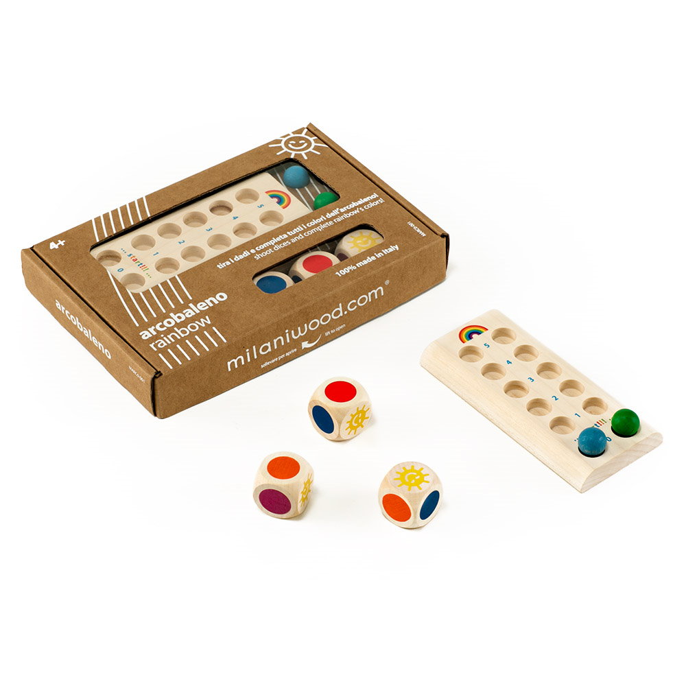 • Rainbow este un joc de societate din lemn bazat pe culori si noroc, asa ca varsta jucatorilor nu conteaza! Copiii si adultii pot concura in conditii egale.