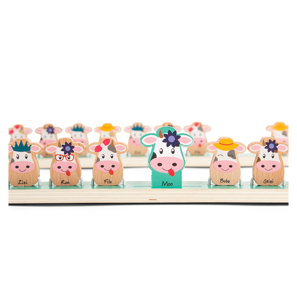 • Jocul contine: 2 baze fiecare cu cate 16 vacute diferite (56 x 4 x 4.5 cm), 16 cartonase.