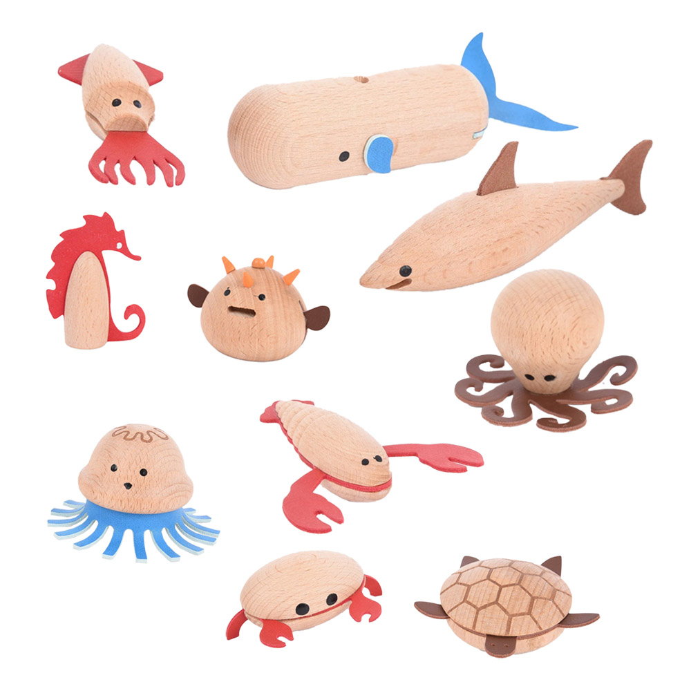 • Copiii vor fi bucurosi sa isi creeze propria aventura subacvatica cu aceste creaturi marine din lemn de la TickiT.